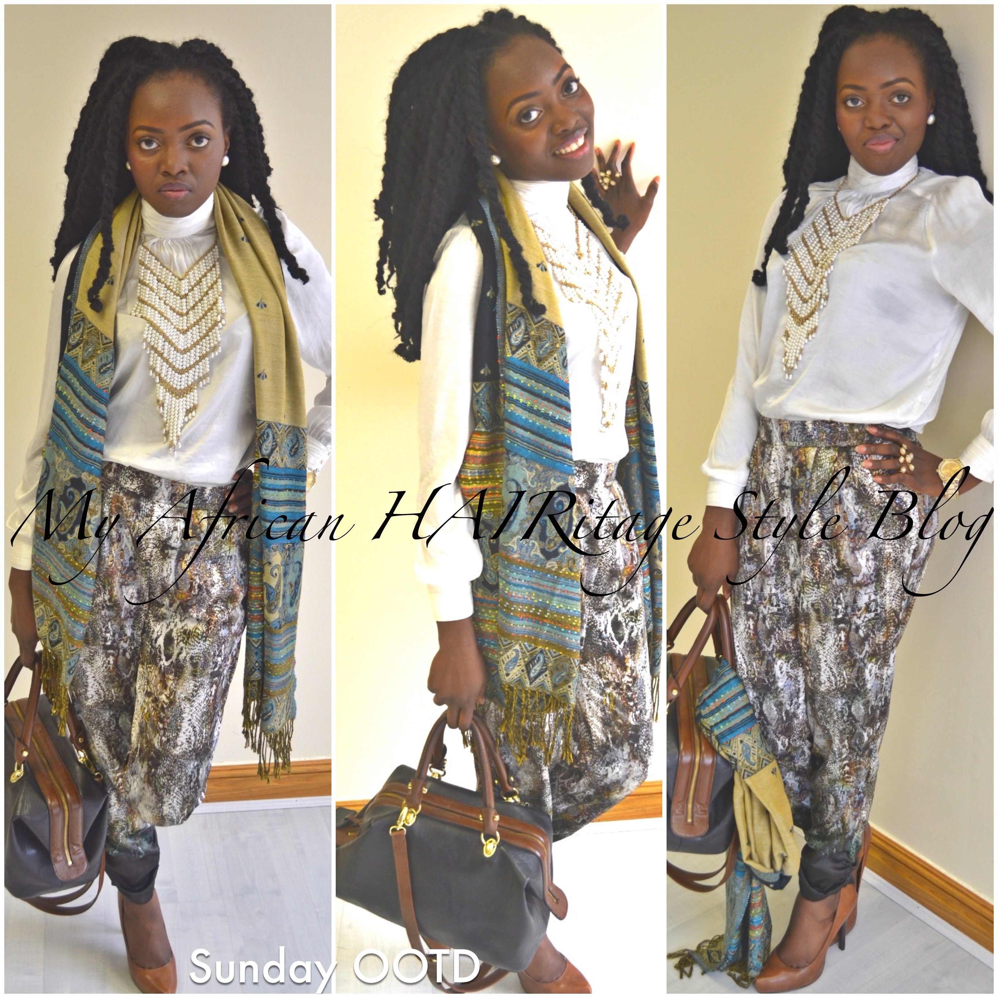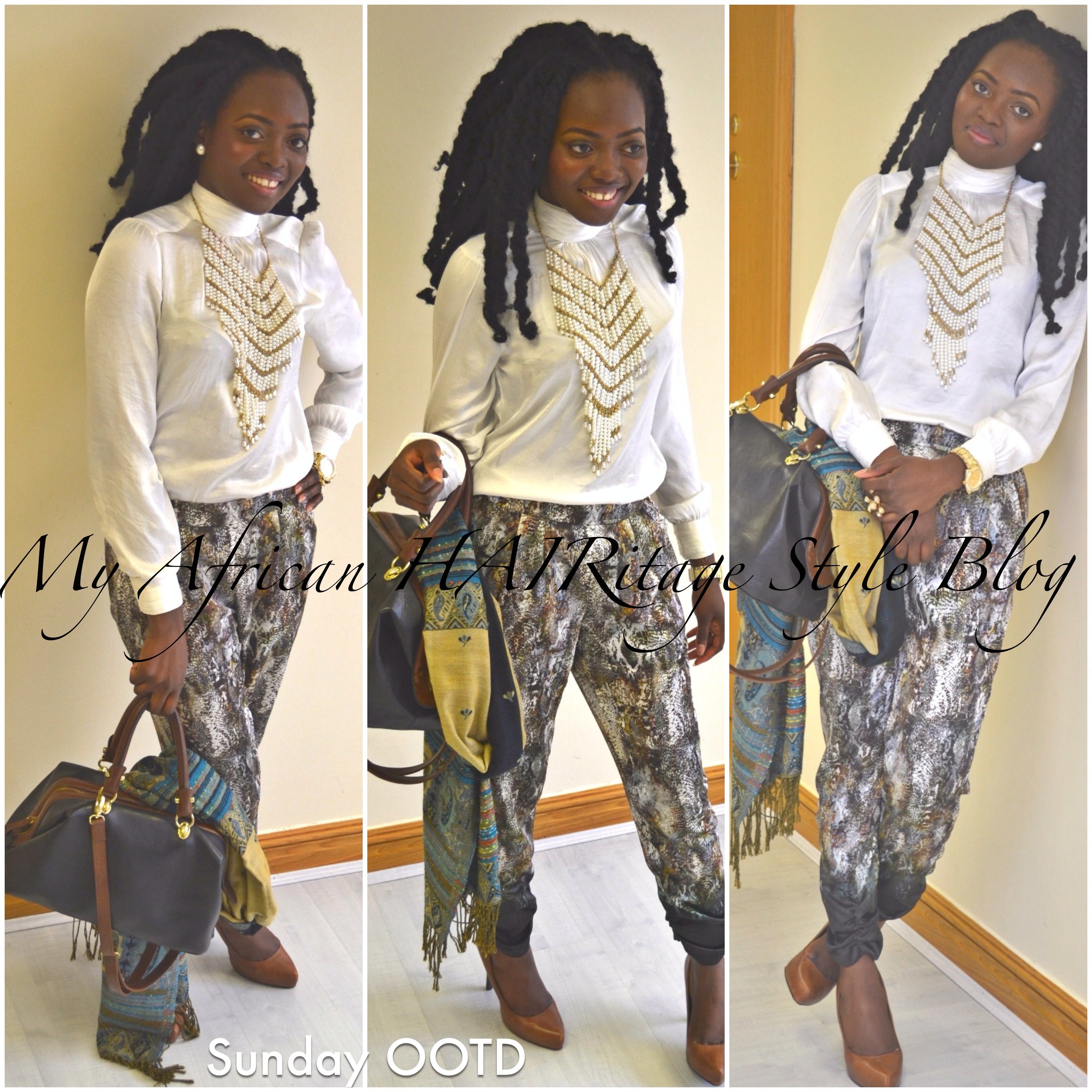 U can combine it with this blog or have a second page on this same blog & talk about how u mix & match ur wears. Like what u have on in d pix above, it took my mind off the hair for a few mins ;). I absolutely love d African inspired pants & d accessories!