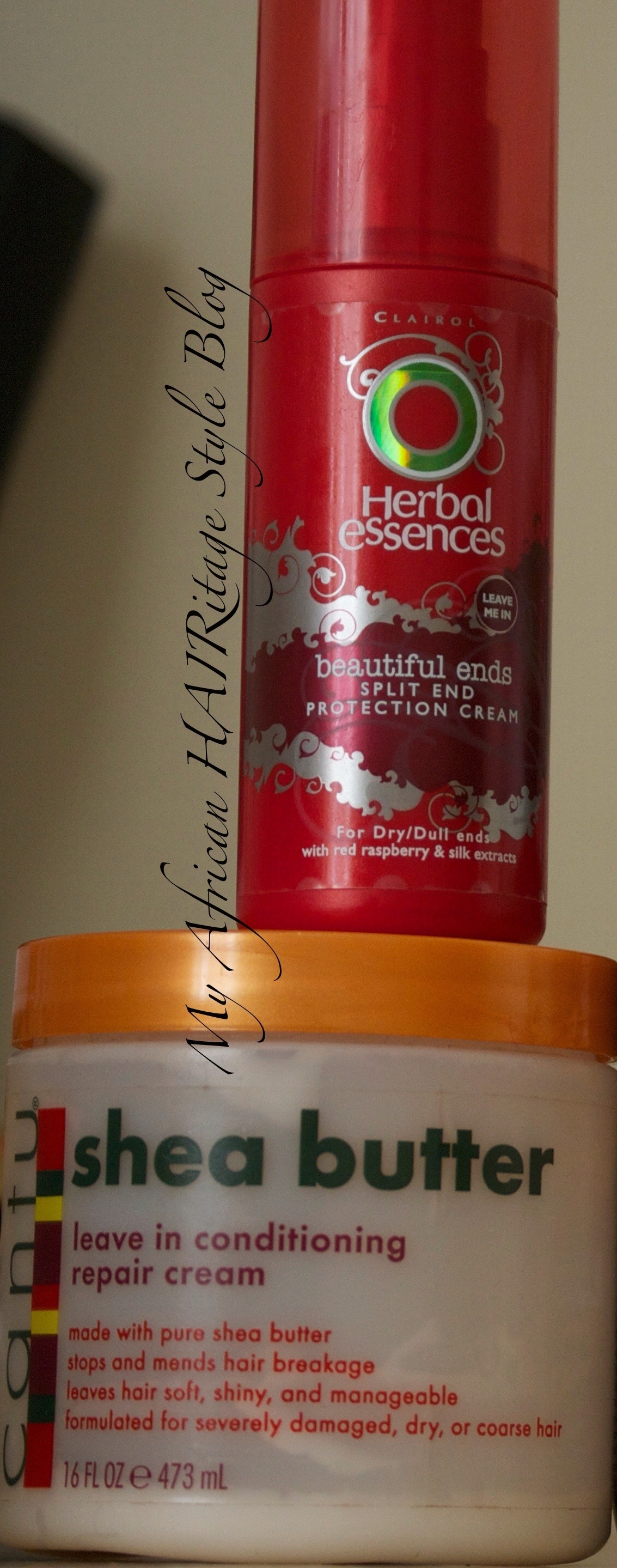 Leave-Ins: I use Herbal Essences Beautiful Ends Split End Protection Cream or Cantu Shea Butter Leave in conditioning repair cream as leave-ins.