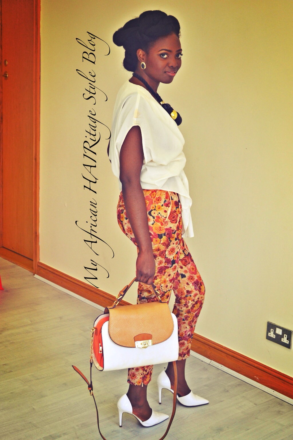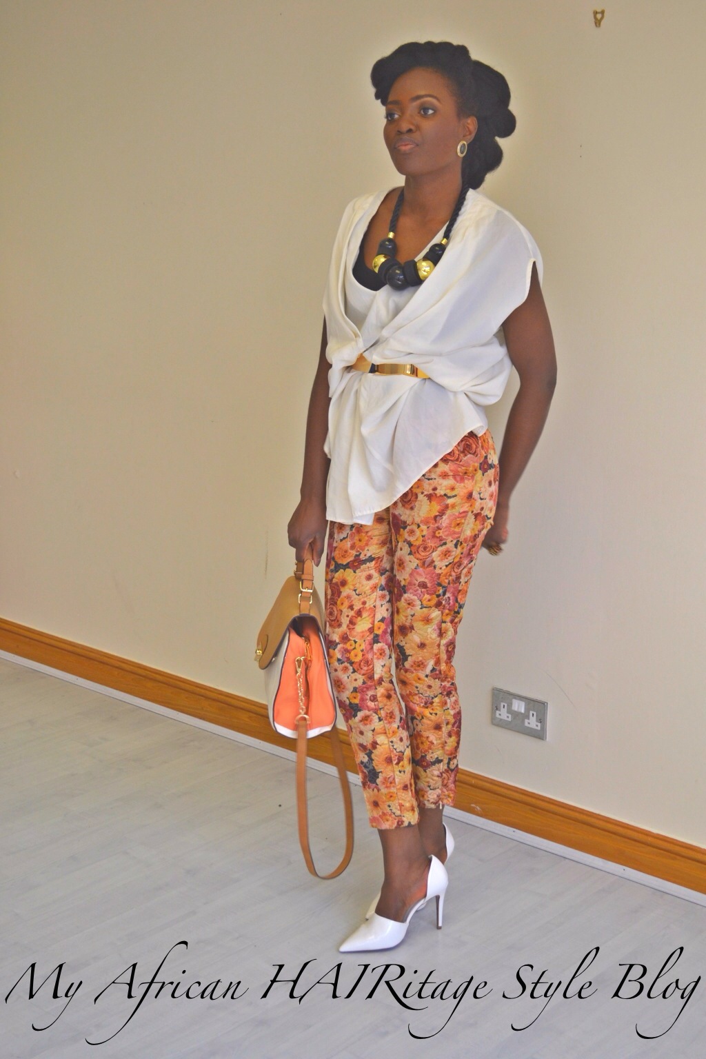 Sis!! This getup is hot!!! Church musta been blazing that day!!! Mehn!!! I absolutely love the print pant, the shoes and the belt, love how the blouse looks confused…lol.., love the bag as well. This outfit is so complete and fabulous! I shhy hire u (Will not pay o) as my stylist for my official launch into the Acting world!! *Dancing Ethighi* The Soap I starred in, will soon be out with a premiere!!!!! 😀