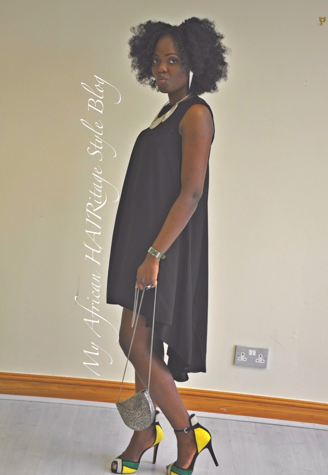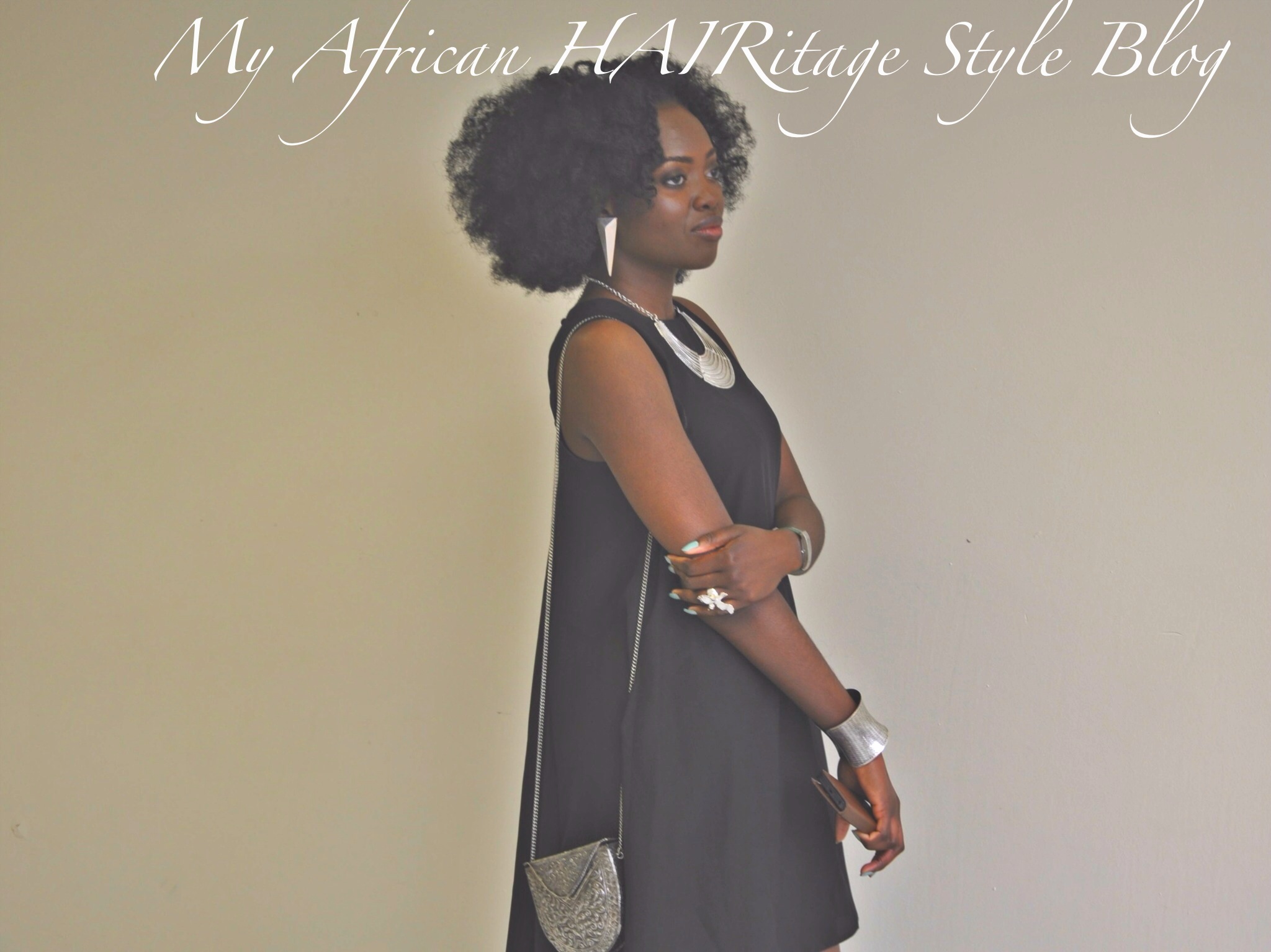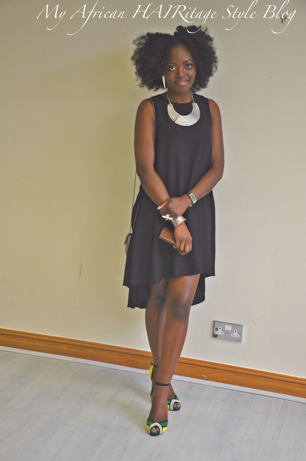 Today’s outfit is a plain flowy black dress (Topshop). The most striking accessories being my hair (God-given plus human dedication lol), the neck piece (2yrs ago from Primark) and wrist piece (cannot remember, some years ago now). My purse is from over 4yrs ago from River Island.