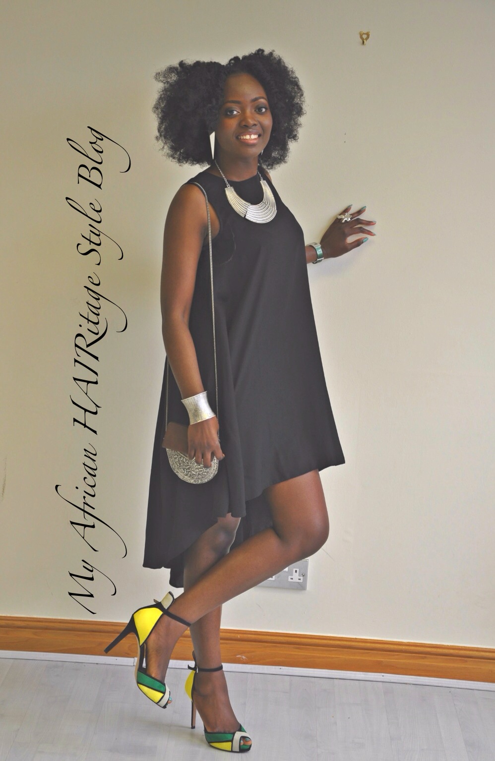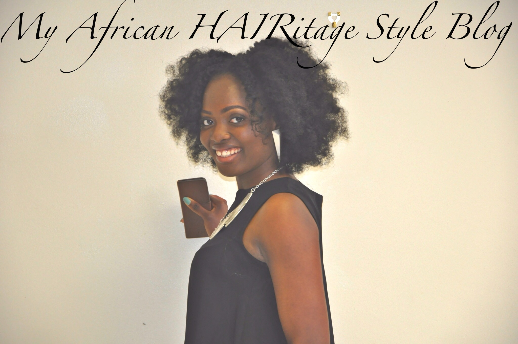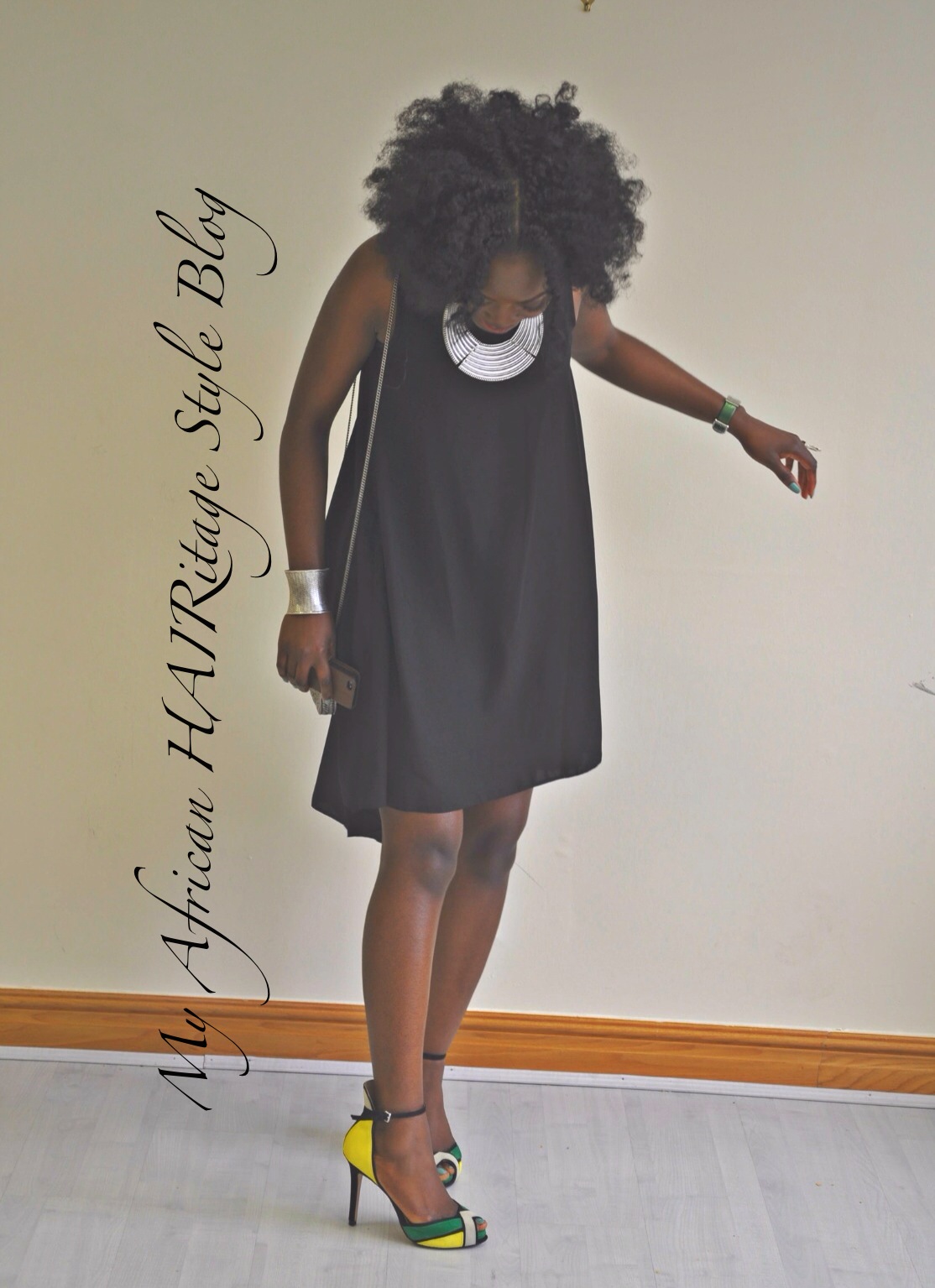 Today’s outfit is a plain flowy black dress (Topshop). The most striking accessories being my hair (God-given plus human dedication lol), the neck piece (2yrs ago from Primark) and wrist piece (cannot remember, some years ago now). My purse is from over 4yrs ago from River Island.