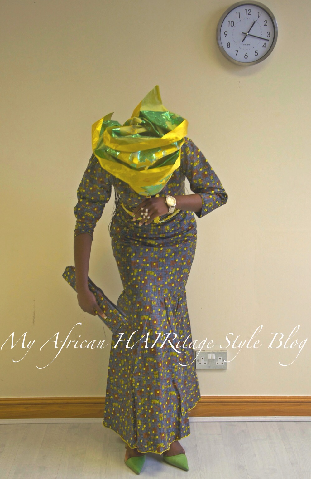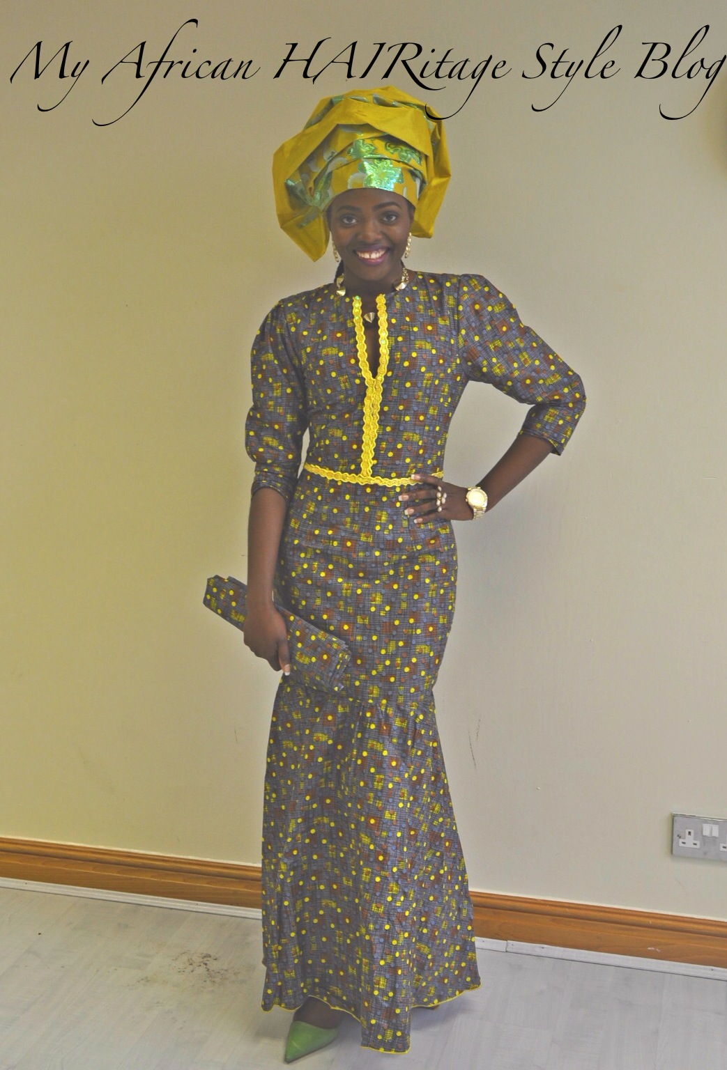 When my ore mi (means my friend in English) came down to the UK on holiday she brought me some goodies from Nigeria (thank you sweetie). Some of the goodies included food (I LOVE FOODDDD!) and three trad attires including two Nigerian gele fabrics (the ones I call foil paper lmao) from our darling mummy. Thank you mummy Adefarakan for the gifts it means so much to me because I obviously have a bug for all things African especially the attires! God bless you ma!! *hugs and kisses* P.S. Adetola this is what we call mummy of life *Big grin*. The tailor in Nigeria made it to perfection as far as I am concerned because I did not have the opportunity to have a dress fitting. As for the gele, oh my God! Let’s just say you need to join a masterclass to gain the skills in the art of gele tying. I have new found respect for those who do this as a profession! All I can say is youtube was useful in assisting me to achieve what I decided to manage on my head as my skill is not even elementary! lmao However, for a first timer I give myself a pat on the shoulders. Special shout out to my dear housemate aka Assumpta for the moral support, no be small thing. This is not for the faint hearted!! Enough of the story land, here are some pictures!