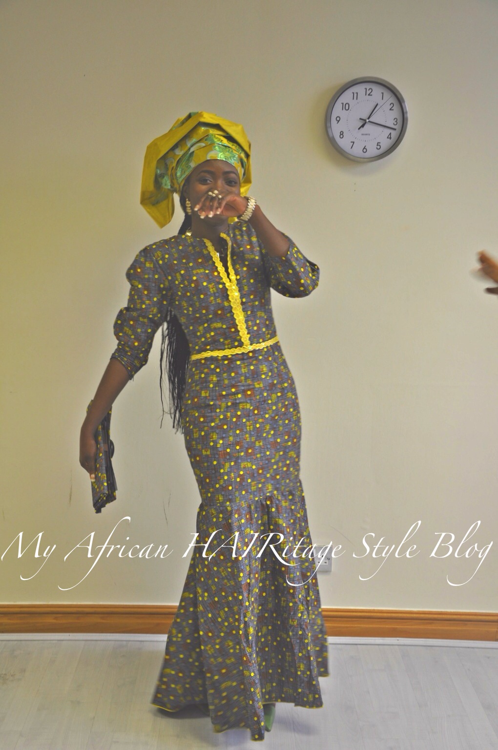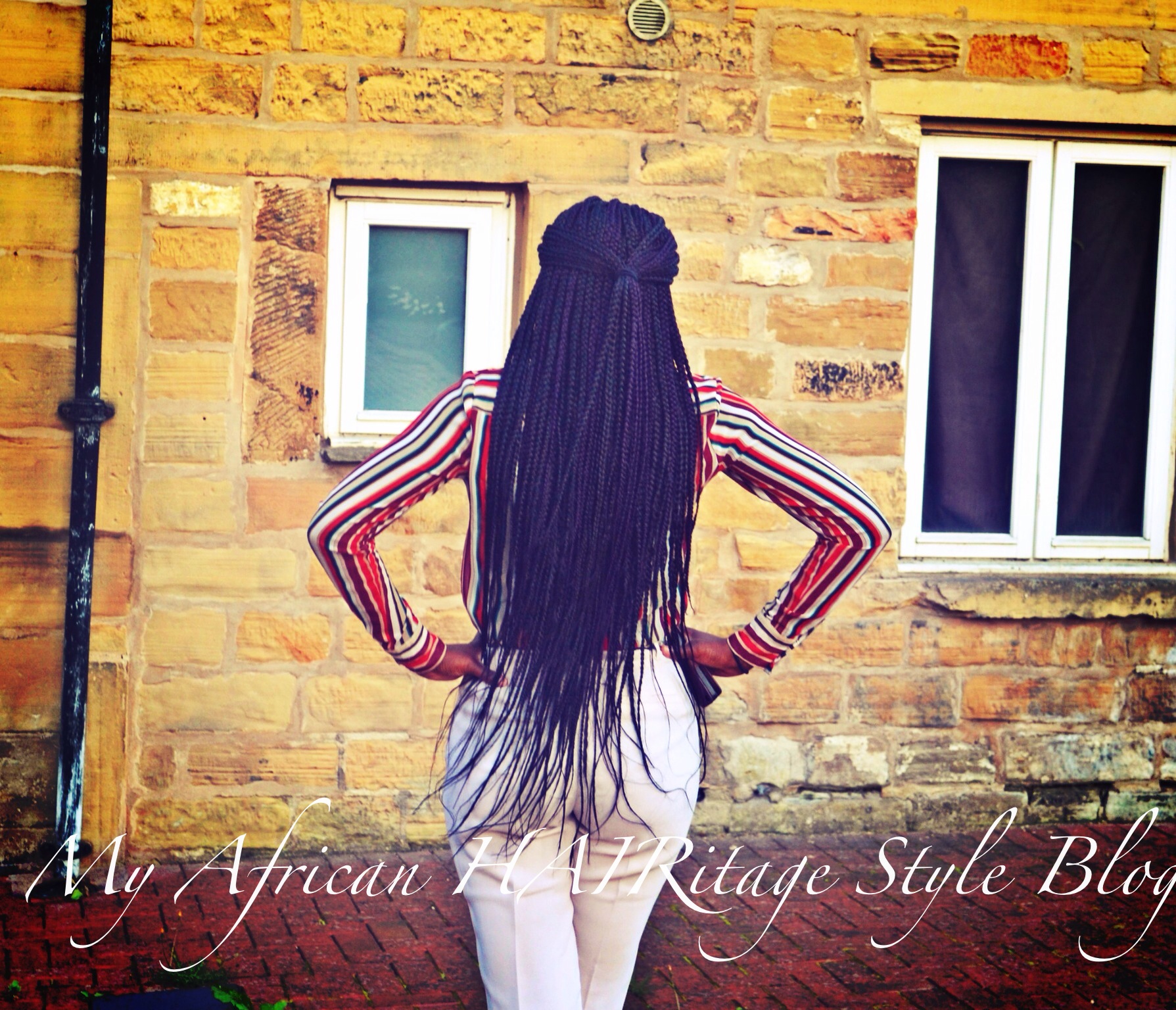 yes! yes!! yes!!! I have been extremely busy in the last 2 months or so. So many things have happened but I do hope that you have had enough to refer to from my previous posts when it comes to managing your hair and tips I have given so far. To break the silence I have decided to post this thanksgiving Outfit Of The Day. As you already know my culture (Nigerian culture) is very rich when it comes to our heritage and one of the times we showcase this is during thanksgiving service! Currently my hair is in bum bum length braids because I have not had time to care for my hair when I left it out and hence I have suffered some set backs in terms of breakage (oh yes, even I am human lol). So, when that happens do not let it get to you it will grow back with proper care again. My darling friend aka Adetola made my braids. Here’s a pic below of the braids before we trimmed it a bit.